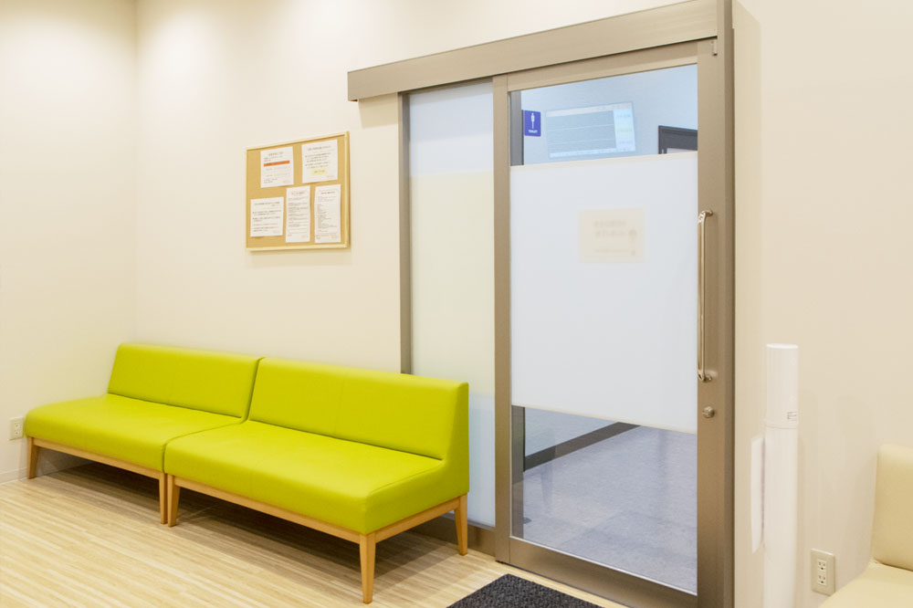 待合スペースです。受付が済みましたら、順番にご案内いたしますので、こちらにてお待ちください。
